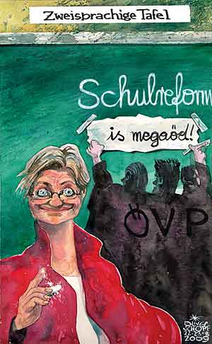 2009: Wer geglaubt hat, es gäbe nur einen Tafelstreit – nämlich in Kärnten, soll sich nur einmal in Klassenzimmer begeben. Auch dort sind zeitweise „Verrückungen“ an der Tagesordnung.
