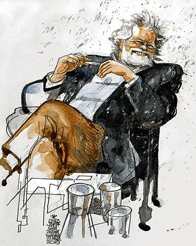 Oliver Schopf, politischer Karikaturist aus Österreich, politische Karikaturen aus Österreich, Karikatur Illustrationen Artwork Wissenschaft und Forschung 2019 ANTON ZEILINGER QUANTENPHYSIK IQOQI BOLTZMANNGASSE WIEN INTERVIEW DER STANDARD FORSCHUNG SPEZIAL PETER ILLETSCHKO TANJA TRAXLER